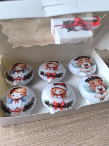 6 db karácsonyi gömb, fehér díszes dobozban.